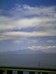 只今、天草の島々を渡っています。雲仙の峰がくっきり姿を見せてくれているので皆さんへもどうぞ! 今夜からAQUAが生まれた島原に3泊滞在します。